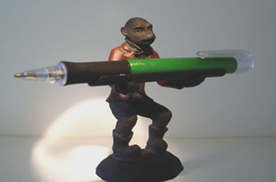 Scientists and you who do not believe in God are prone to ignore the basic laws of physics like entropy, therefore notice who is dressed up in modern clothing in the next picture. I think it is an evolved scientist kissed by university-educated maiden found only in painted images on the many museum walls. He is looking very civilized with shirt, tie, and holding a pen pondering its implication. How did a monkey evolve and become so sophisticated and cultured to attain writing skills so that he holds his pen so proudly?