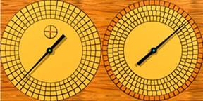 This is an astronomical ratio we will talk about at the end of this book. Our calculated ratio today is 13.368267, a very small amount difference: .0000115. That could translate to our 23½-degree tilt axis (Y), which is not at rest, as science assumes. If you turn the graphic crank to make the pointer go around, you will notice on this dial that the two pointers cross each other over seven times. At that point, we should see a marker in a circle dividing the seven cycles. Since I do not have any picture available from the clock, we should look for them because they represent the X-axis in the pre-Flood Aztec calendar.